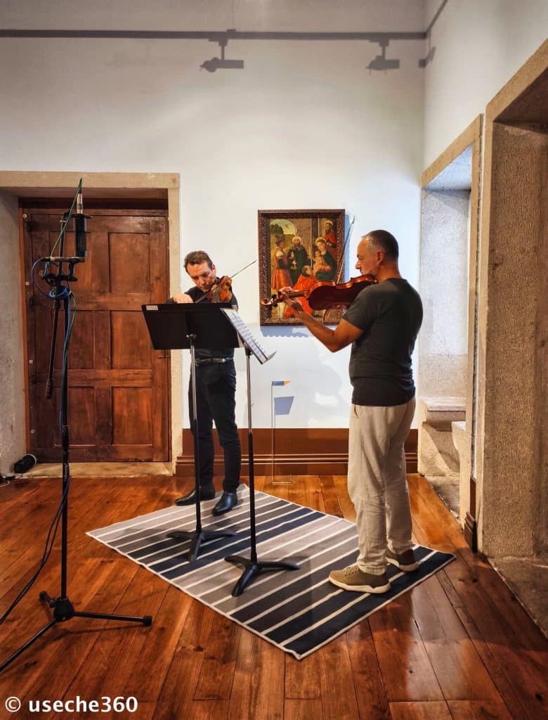 A primeira proba de son para o proxecto colaborativo de gravación entre Organistrum-CSM Vigo tivo lugar neste ano 2025 dentro da Biblioteca América (Santiago de Compostela), cuxos andeis (provenientes de San Martiño Pinario) foron creados precisamente no XVIII. A finais de setembro, o proxecto trasladouse ao antigo Pazo dos Barbosa Maciel (actual Museo de Artes Decorativas) en Viana do Castelo (Portugal), pois unha das súas salas conta con azulexaría setecentista que mostra varias imaxes de violinistas. No devandito inmoble, Roberto Noche (CSM Vigo/USC) gravou con precisión o audio dos seis dúos completos. Tamén se tomaron fotografías e clips de vídeo, grazas ao labor de Manuel Useche.